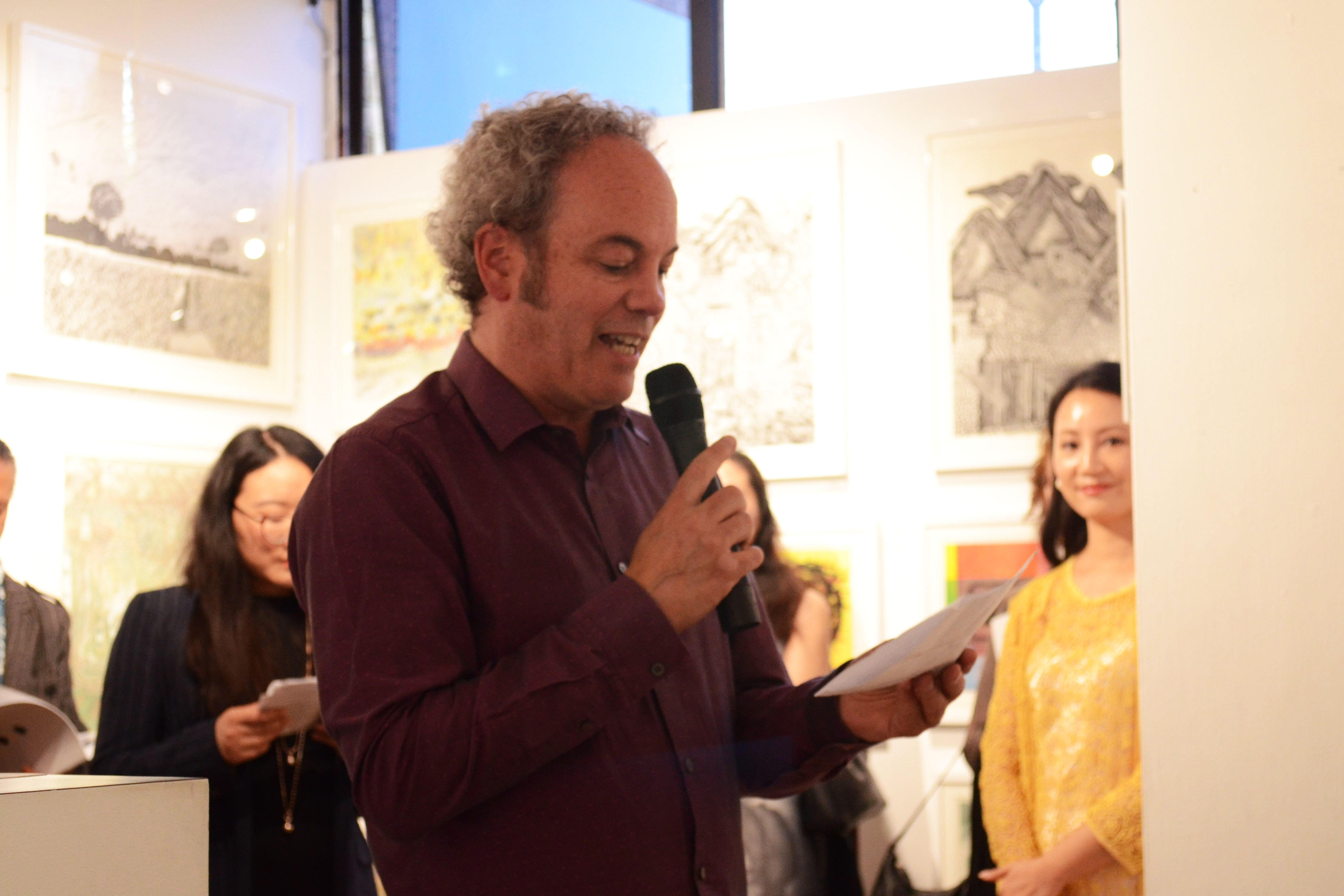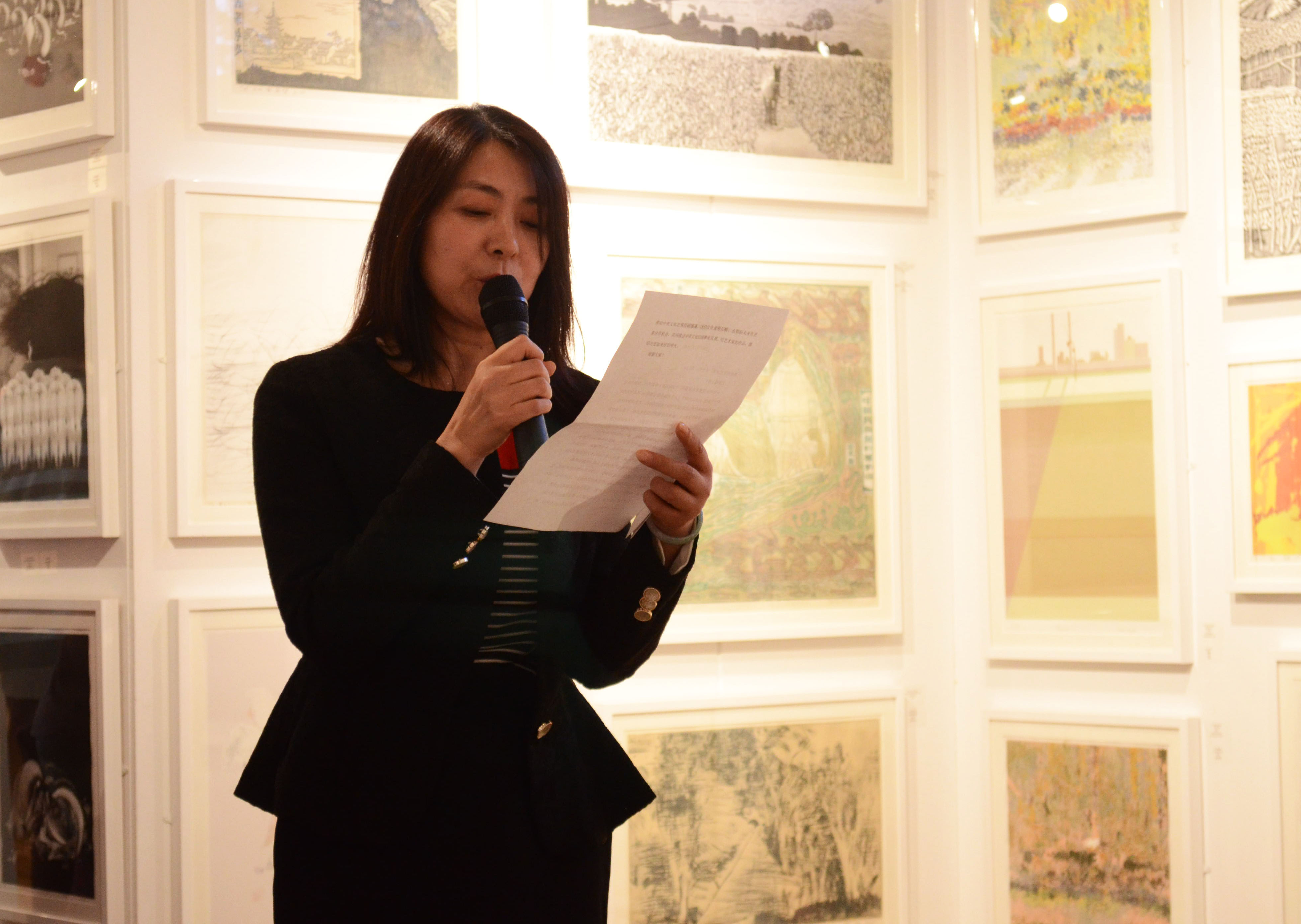 畫展開幕儀式上,英國皇家版畫家協(xié)會(huì)主席Michael Barratt、江蘇省美術(shù)館館長徐惠泉、愛濤文化集團(tuán)常務(wù)副總經(jīng)理陳云梅分別致辭,并向參展本次版畫展的中英藝術(shù)家代表頒發(fā)了參展證書。