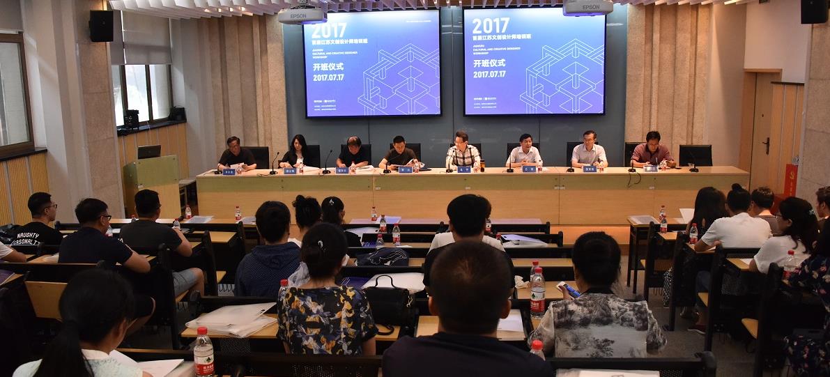 由江蘇藝術(shù)基金立項(xiàng)資助,愛濤文化集團(tuán)主辦、南京藝術(shù)學(xué)院設(shè)計(jì)學(xué)院承擔(dān)教學(xué)的2017江蘇文創(chuàng)設(shè)計(jì)師培訓(xùn)班,于7月17日在南京藝術(shù)學(xué)院設(shè)計(jì)學(xué)院舉辦了開班典禮。江蘇省文化廳巡視員馬寧、江蘇省文化廳辦公室主任、江蘇藝術(shù)基金管理中心主任李川、南京藝術(shù)學(xué)院副院長(zhǎng)呂斌、愛濤文化集團(tuán)董事長(zhǎng)張發(fā)松、常務(wù)副總經(jīng)理陳云梅、南京藝術(shù)學(xué)院設(shè)計(jì)學(xué)院院長(zhǎng)鄔烈炎、江蘇省文化廳科產(chǎn)處副處長(zhǎng)耿衛(wèi)等領(lǐng)導(dǎo)出席開班儀式,南藝設(shè)計(jì)學(xué)院副院長(zhǎng)李永清主持開班儀式。