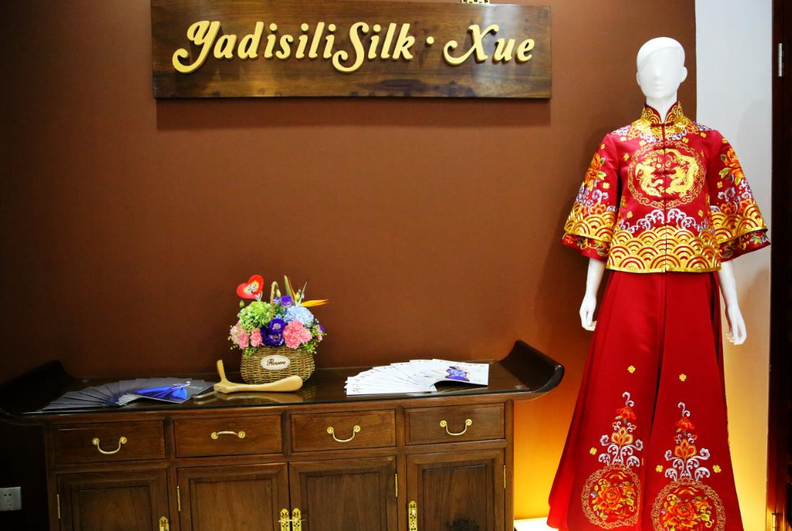 “YADISILISILK·XUE”為蘇州市歐星絲綢紡織有限公司旗下高定品牌,金雞湖店陳列了中式嫁衣、禮服、婚紗等高級(jí)定制華服和成衣系列,當(dāng)中融入了非常多的傳統(tǒng)文化,包括蘇繡、盤金繡、手繪等。今后在這里,客戶可以體驗(yàn)到純粹的手工制衣,享受量體裁衣的專屬性。