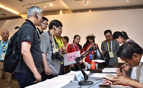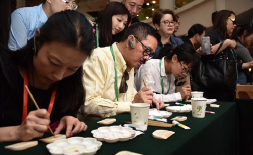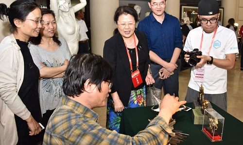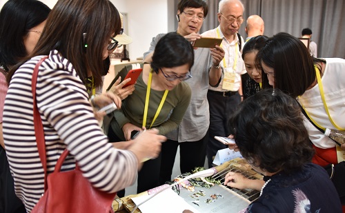 在非遺表演項(xiàng)目南京方山大鼓的歡騰聲中,港澳交流訪團(tuán)開啟了愛濤藝術(shù)中心的非遺文化之旅。吳楚風(fēng)韻江蘇省非物質(zhì)文化遺產(chǎn)精品展向訪團(tuán)展示了精巧雅致的核雕,工藝獨(dú)特的常州梳篦,秀麗、清雅的蘇繡,巧奪天工的南京金箔鍛制品,溫潤如玉的留青竹刻等國家級(jí)、省級(jí)的非物質(zhì)文化遺產(chǎn)項(xiàng)目,并參與體驗(yàn)了梳篦的制作和上色。這些杰出的非遺作品令港澳交流訪團(tuán)連連稱道,贊不絕口。