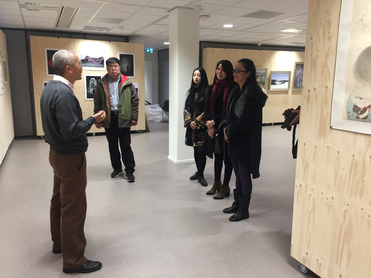 為迎接即將啟動的開幕式活動,團隊的藝術家們一大清早就來到海牙中國文化中心,現場指導作品布展工作,并就海牙中國文化中心在未來策展規劃和開展多種模式聯合運作等方面工作與黃宏昌副主任進行了交流,為今后文化藝術交流工作提出了許多寶貴意見和建議。