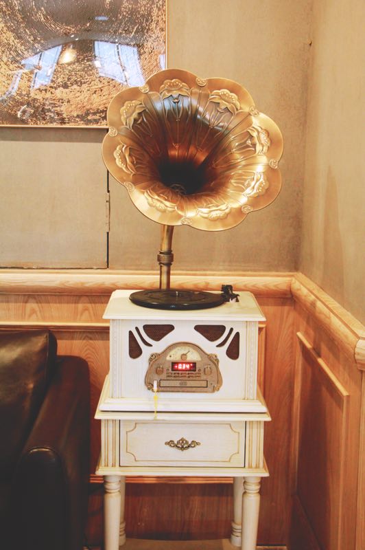 要一杯咖啡,意式的或手沖的,甚至一杯熱飲也可以,聽著老式留聲機里緩緩流淌出的民國老曲,在一張椅子上坐下。陽光從身后的窗戶投射進來,光線朦朦朧朧,那情景,那情調,讓人頓時有了一種真切的穿越之感——